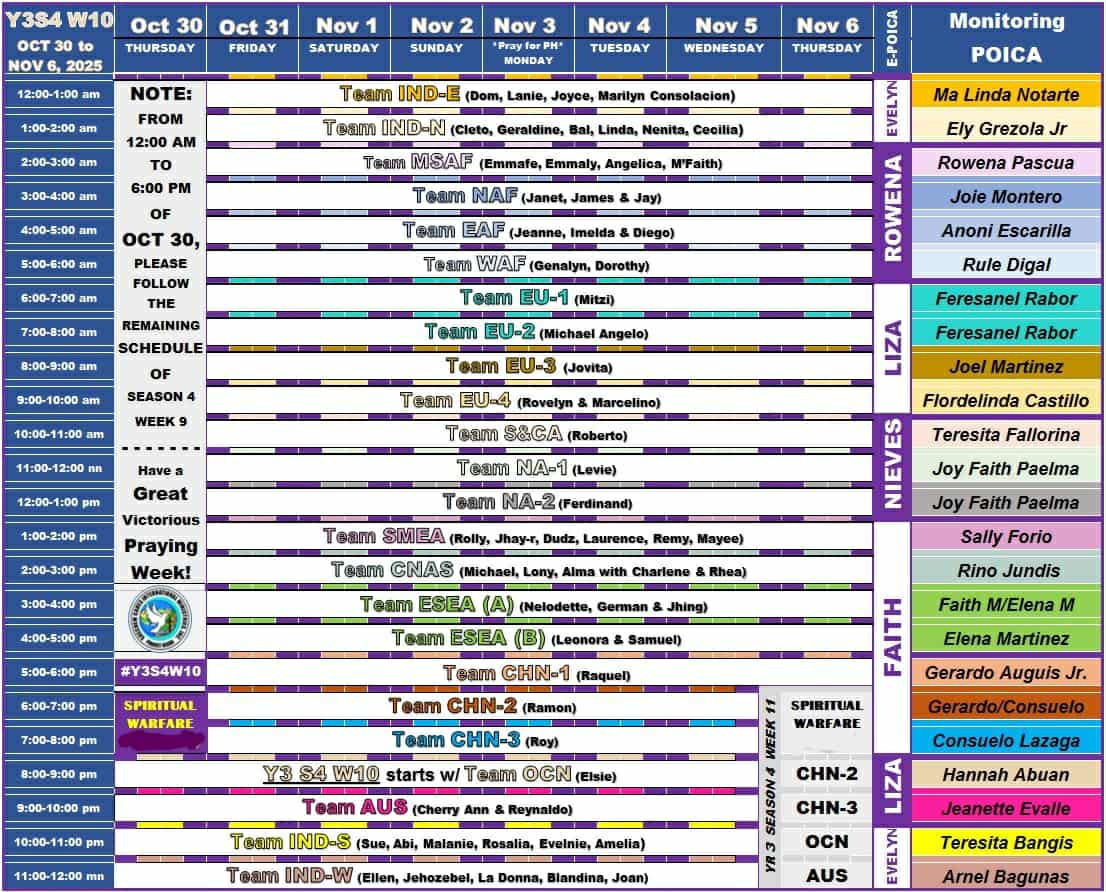 PROJ. OCEAN 24/7 PRAYER SCHEDULE OCT. 30 – NOV. 06, 2025
