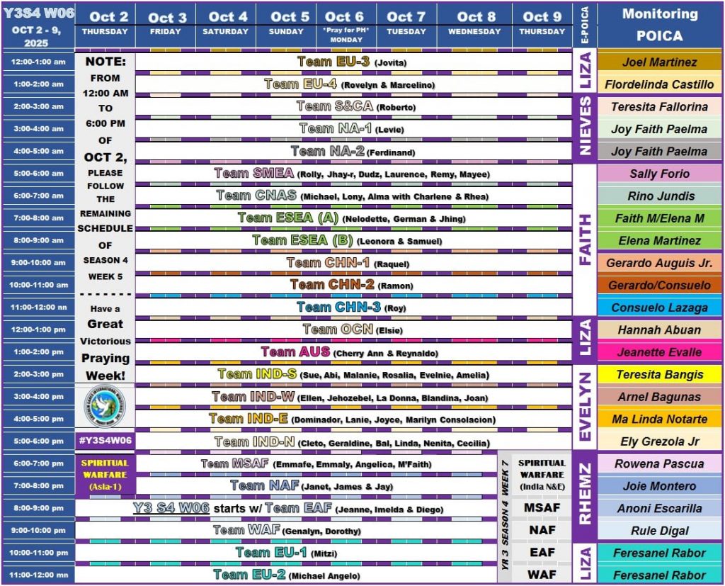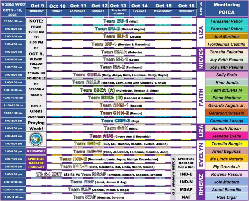 PROJ. OCEAN 24/7 PRAYER SCHEDULE OCT. 02 – 23, 2025